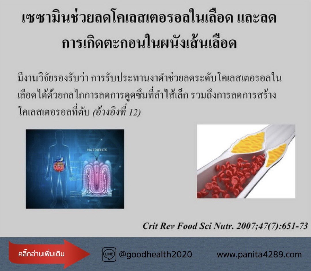 สารเซซามิน (Sesamin) ช่วยลดทั้งการสังเคราะห์และลดการดูดซึมสารโคเรสเตอรอล