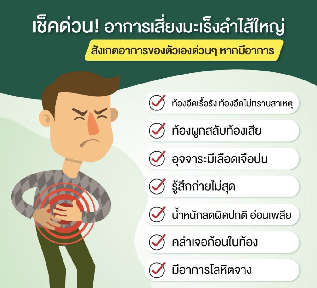 “มะเร็งลำไส้ใหญ่” โรคที่พุ่งขึ้นมาติดอันดับต้นๆ และทำให้คนไทยเสียชีวิตมากที่สุด โดยจากสถิติพบผู้ป่วยมะเร็งลำไส้ใหญ่เพศชาย 10 คนต่อประชากรชาย 100,000 คน และเพศหญิง 7 คนต่อ 100,000 คน แต่รู้ไหมว่ามะเร็งลำไส้ใหญ่เป็นโรคที่ป้องกันได้หากเรารู้สัญญาณ การสังเกตอาการ และวิธีป้องกันตัวเอง เพราะสาเหตุของการเกิดมะเร็งลำไส้ใหญ่ นอกจากกรรมพันธุ์เป็นส่วนหนึ่งแล้ว พฤติกรรมการทานอาหารของคนไทยเรานี่ล่ะ คือ สาเหตุหลักของมะเร็งลำไส้ใหญ่