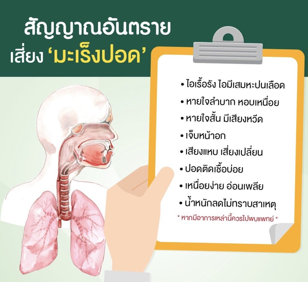 ระยะเริ่มแรกของโรค จะไม่มีอาการใดๆ ที่บ่งบอกได้อย่างชัดเจนว่าเป็นโรคมะเร็งในปอด แต่ควรสังเกตจากอาการเหล่านี้
