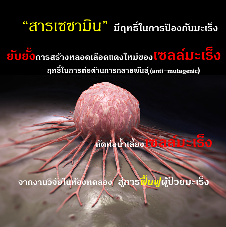 สารเซซามิน (Sesamin) ทำให้มะเร็งบางชนิดเข้าสู่ขบวนการทางชีวเคมีที่ทำให้เซลล์ตาย