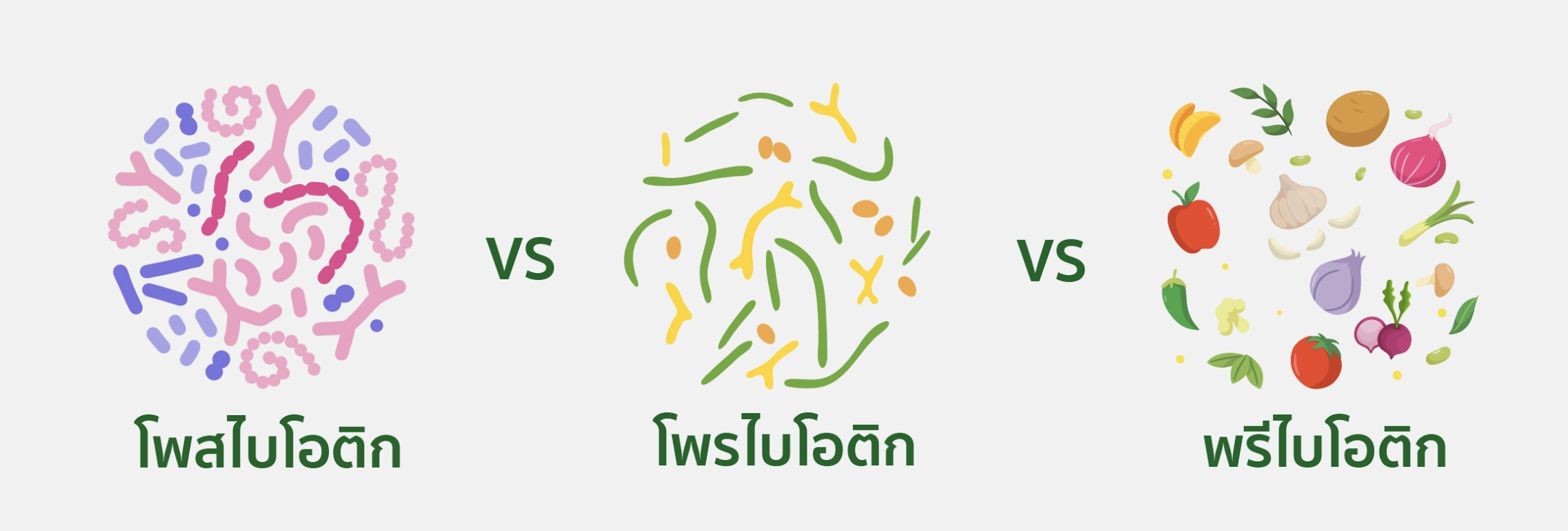 เพราะมีพรีไบโอติก โพรไบโอติกถึงเจริญเติบโตได้ดี และเพราะการทำงานของโพรไบโอติก จึงทำให้เกิดโพสไบโอติกที่เกิดประโยชน์ต่อร่างกาย จึงจำเป็นต้องปรับสมดุลลำไส้เพื่อให้ร่างกายมีครบ ทั้งพรีไบโอติก โพรไบโอติก และโพสไบโอติก
