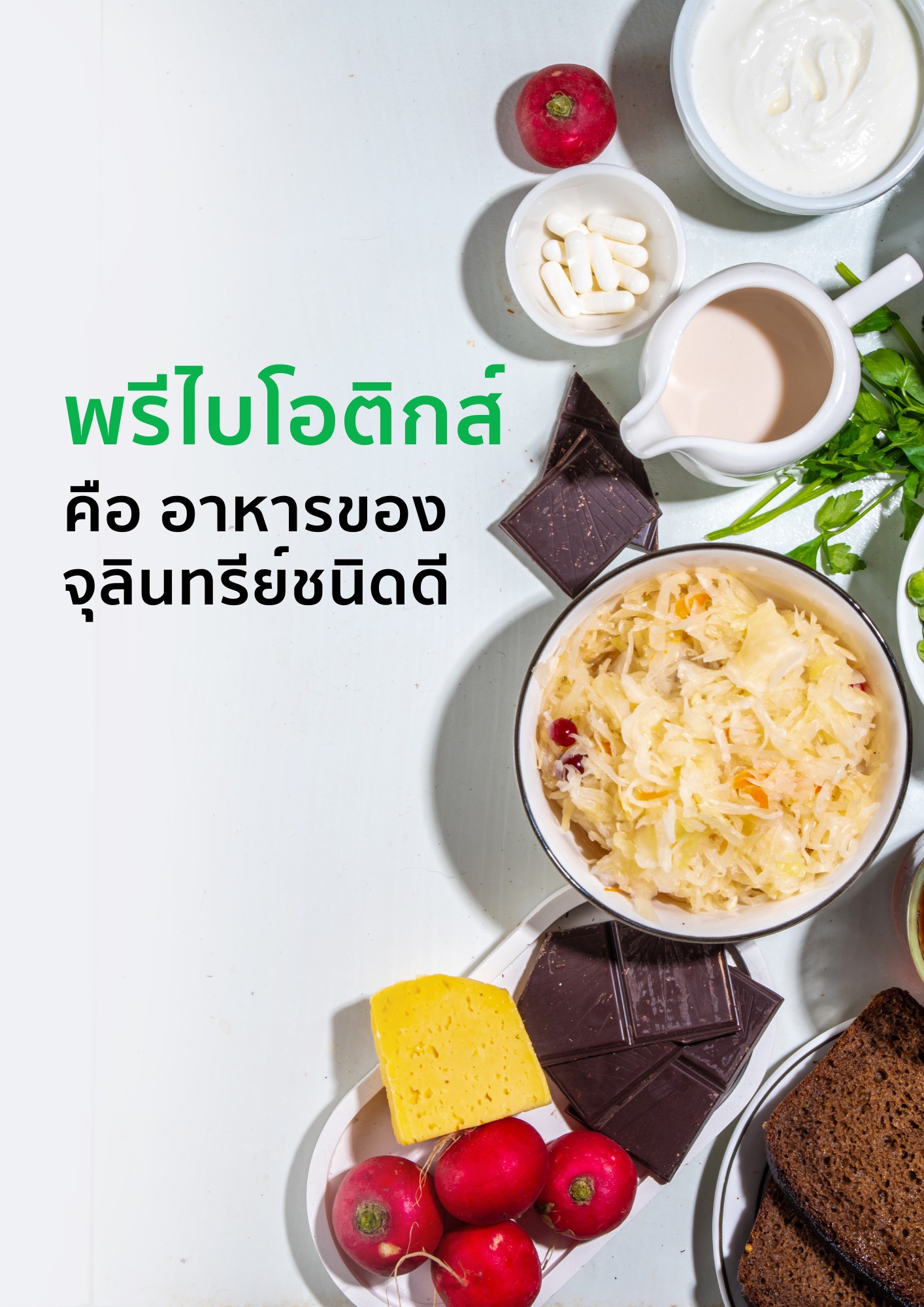 พรีไบโอติก (Prebiotics) เป็นอาหารของโพรไบโอติก ช่วยกระตุ้นและส่งเสริมให้โพรไบโอติกทำงานได้ดีขึ้น มักพบในผัก ผลไม้ กระเทียม หัวหอม และอาหารที่มีใยอาหารมาก ช่วยส่งเสริมการเจริญเติบโตของเชื้อแบคทีเรียที่ดีอย่างโพรไบโอติก ช่วยในการลดการอักเสบในลำไส้ และเพิ่มปริมาณของกรดไขมันสายสั้น5