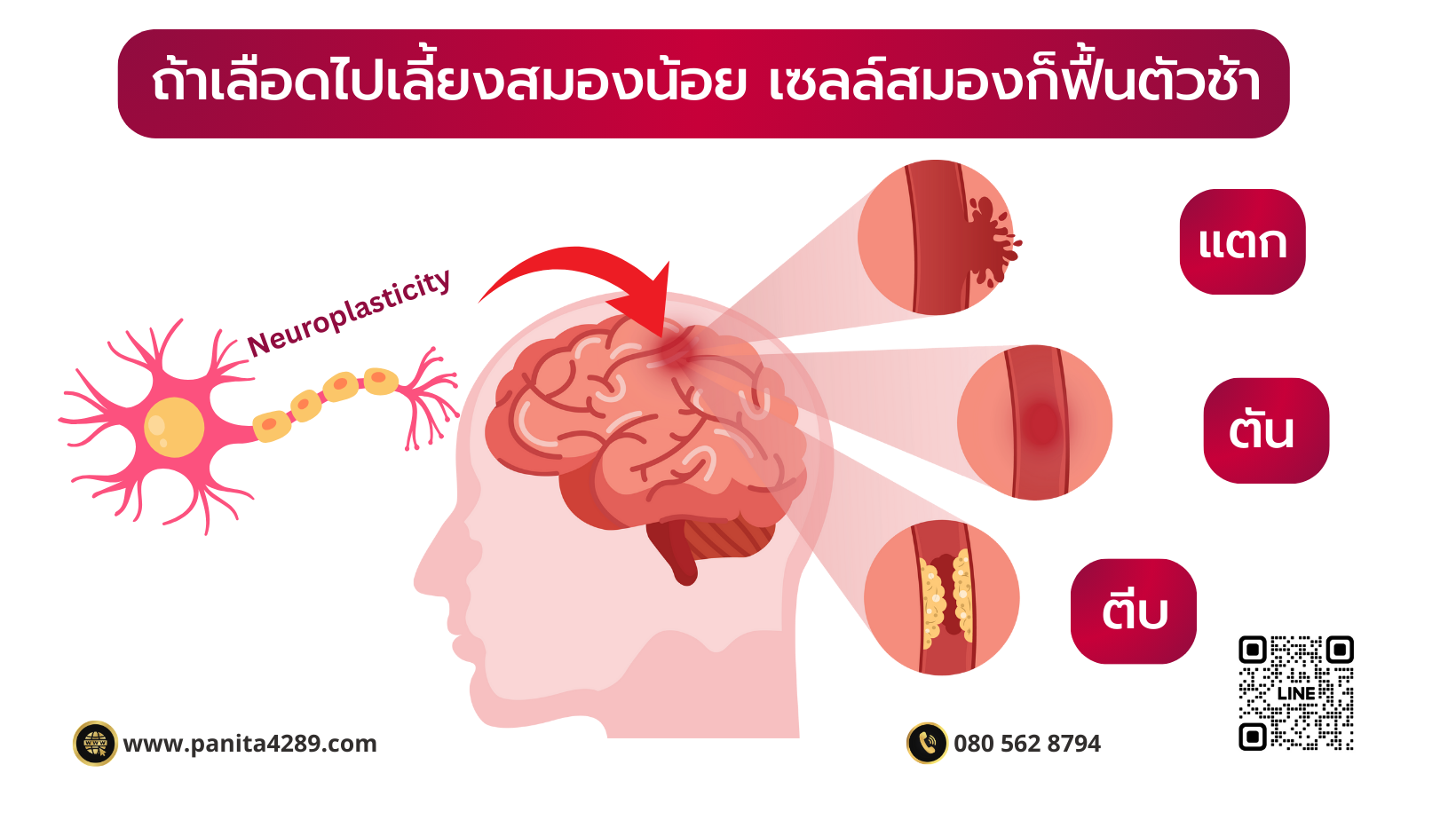 ไม่ใช่แค่กายภาพบำบัดอย่างเดียว แต่สมองต้องได้รับสารอาหาร และการกระตุ้นเฉพาะทาง เพราะสมองเรามีความสามารถพิเศษครับ ที่เรียกว่า "สร้างทางเดินประสาทใหม่" ถ้าส่วนหนึ่งพัง สมองจะหาทางอื่นหรือฟื้นฟูตัวเอง เพื่อสั่งให้ร่างกายขยับได้เหมือนเดิม