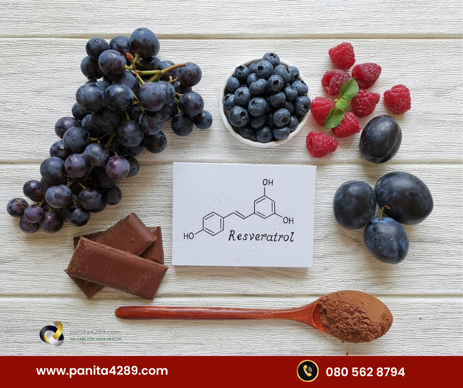Resveratrol เป็นสารต้านอนุมูลอิสระที่ทรงพลัง พบมากในเปลือกองุ่น เมล็ดองุ่น มัลเบอร์รี่ และไวน์แดง