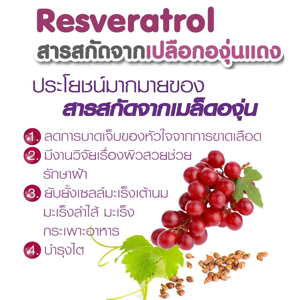 Resveratrol ขึ้นชื่อว่าเป็นสารต้านแก่ หรือชะลอความชรา เป็นสารที่พบมากบนผิวองุ่น แต่ถ้าอยากรับสาร Resveratrol ในปริมาณมากจะให้ทานองุ่นทั้งวันคงจะไม่ไหว อาหารเสริม Resveratrol จึงช่วยตอบโจทย์ความต้องการตรงนี้ได้